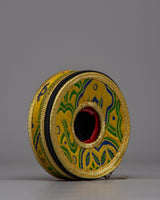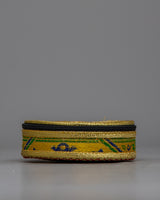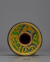 Presenting the Cover for Tingsha, which is expertly designed to offer your Tingsha bells both style and security. This cover, which has a 9.5cm diameter, guarantees a tight fit while protecting your bells from dust and scratches when not in use.