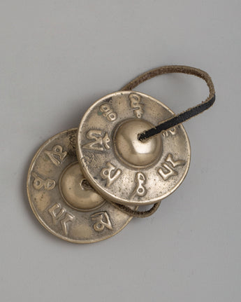 Tingsha are hand-held cymbals used in Tibetan Buddhism. They consist of two metal discs struck together to produce a high-pitched, clear sound. Tingsha is thought to offer relaxing and contemplative properties and is frequently used in prayer, meditation, ritual, sound healing, and music.
