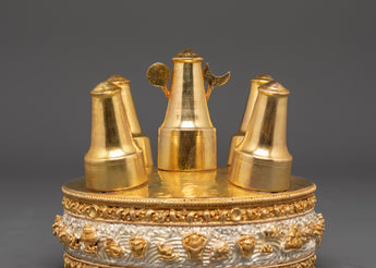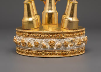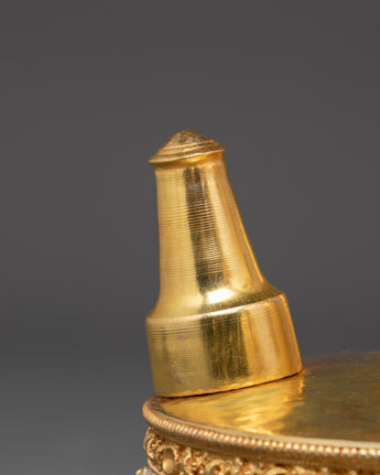 This gold-plated Tibetan Torma, whether used in formal ceremonies or as a spiritual centerpiece, exudes elegance and meaning. It is an effective tool for practitioners that enhances meditation, rituals, and devotional spaces.