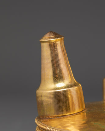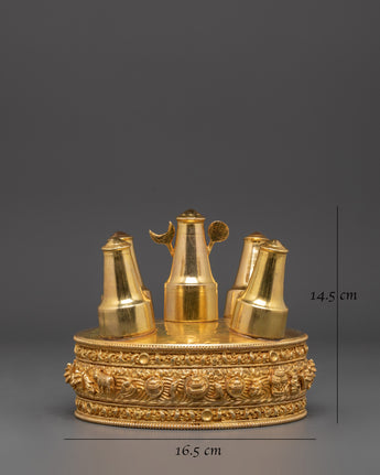 This stunning piece is expertly crafted from copper and richly finished in radiant gold plating. It measures 14.5 cm in height and 16.5 cm in width, with a weight of 0.85 kg, lending it both visual presence and ritual significance. The elegant shape and polished surface reflect the careful attention to traditional symbolism and fine Himalayan metalwork. Its design serves both as an offering and a powerful reminder of impermanence and devotion in Vajrayana Buddhist practice.
