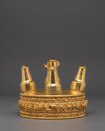 Ideal for personal altars, temple settings, or ritual ceremonies, this gold-plated Torma functions as both a sacred object and a decorative spiritual element. Whether used in daily offerings or placed as a devotional symbol, it carries deep energetic meaning and enhances the spiritual atmosphere of any sacred space.