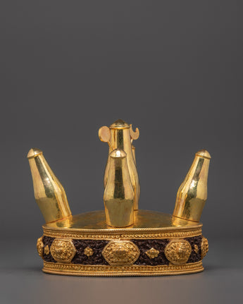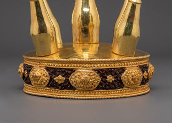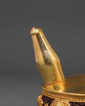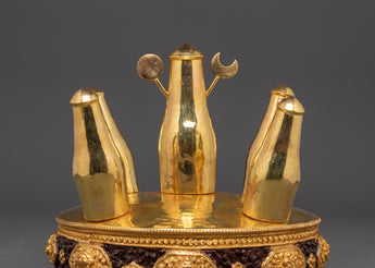 This elegant piece is made from copper and richly coated in radiant gold plating, symbolizing the pure and precious nature of spiritual offerings. Measuring 17cm in height and 19cm in width and weighing 0.74kg, it is substantial yet easy to place on any home altar or ritual table. Its smooth contours and polished finish reflect the high craftsmanship of Himalayan artisans, bringing sacred tradition into contemporary spiritual spaces.