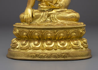 This Handmade Gautama Buddha Art: Sage of the Shakyas stands 9.1” (23 cm) tall with a base width of 6.3” (16 cm) and weighs 1.63 kg. Made from a copper body, covered with gold coloring, exemplifying the skilled craftsmanship of Nepali artisans. Gautama Buddha, the enlightened sage and founder of Buddhism, is portrayed with serene composure, inspiring peace and wisdom. This statue is a meaningful addition to meditation spaces, altars, or spiritual collections.