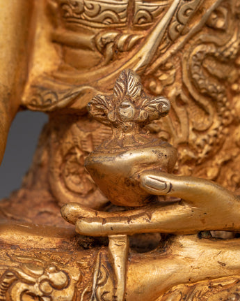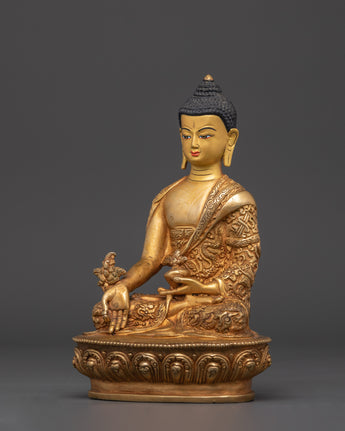 Handcrafted Bhaisajyaguru Statue | Copper Gold Plated Healing Buddha