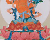 Manjushri with Chenrezig and Vajrapani Thangka | The Divine Triad of Wisdom, Compassion, and Protection