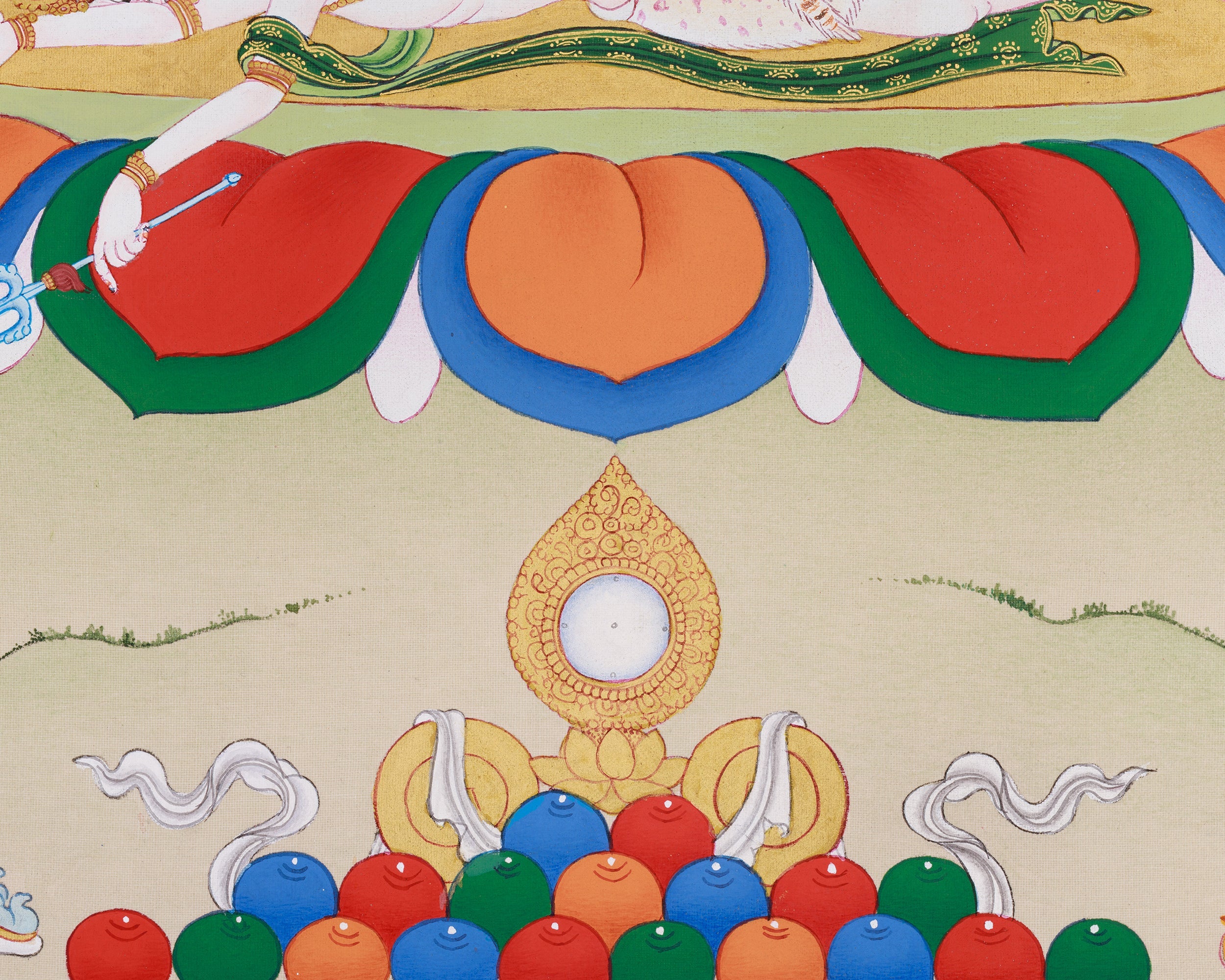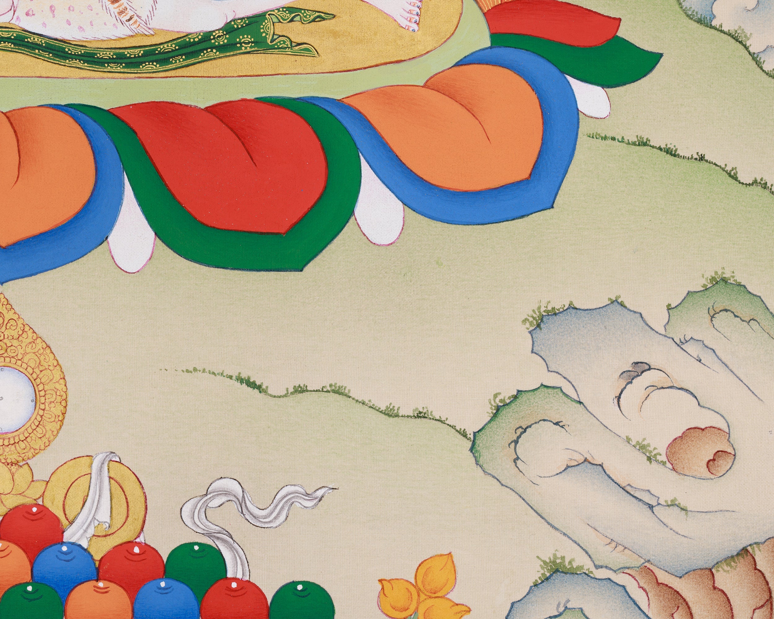 - Regularly inspect your thangka; examine the borders and all attachments.