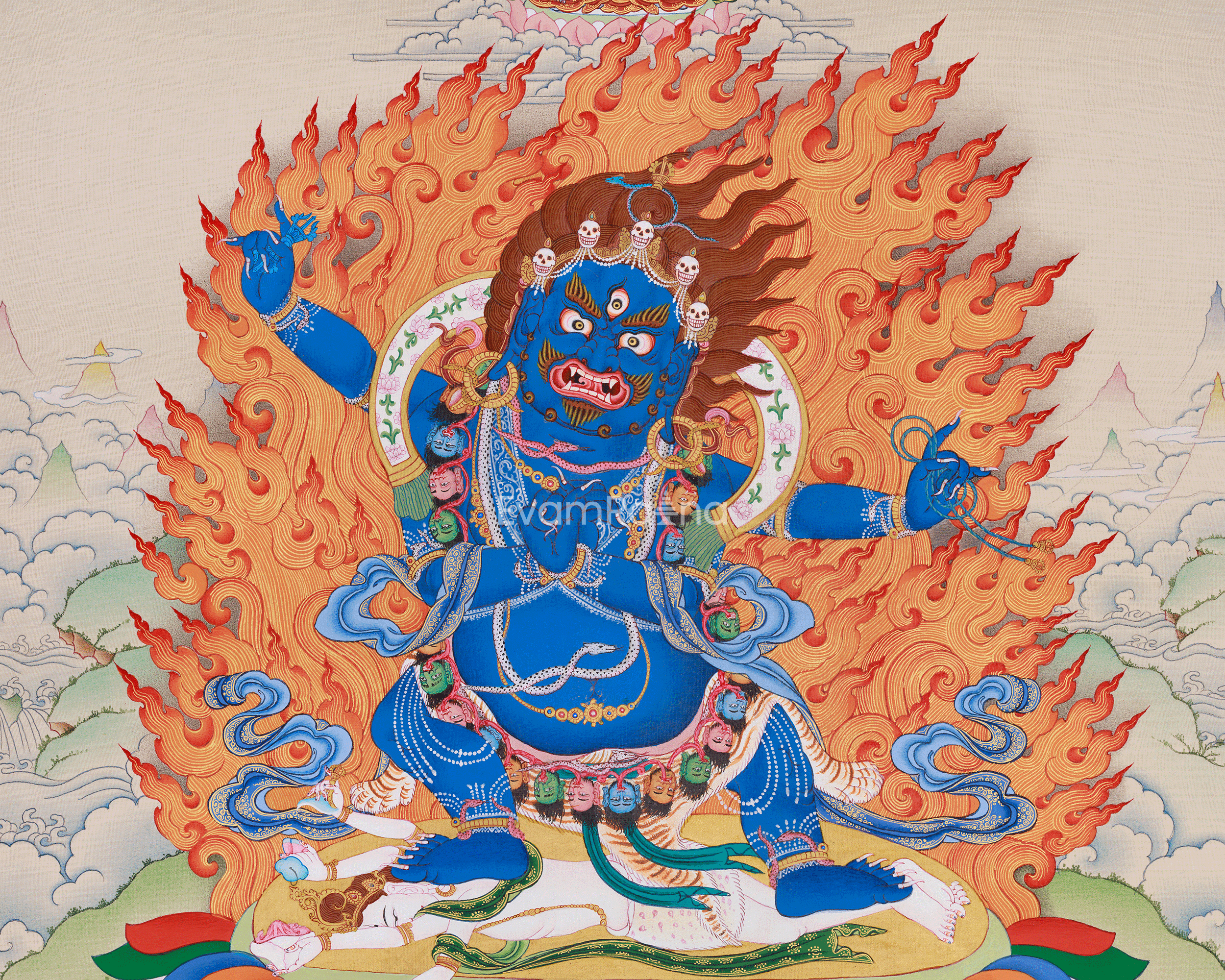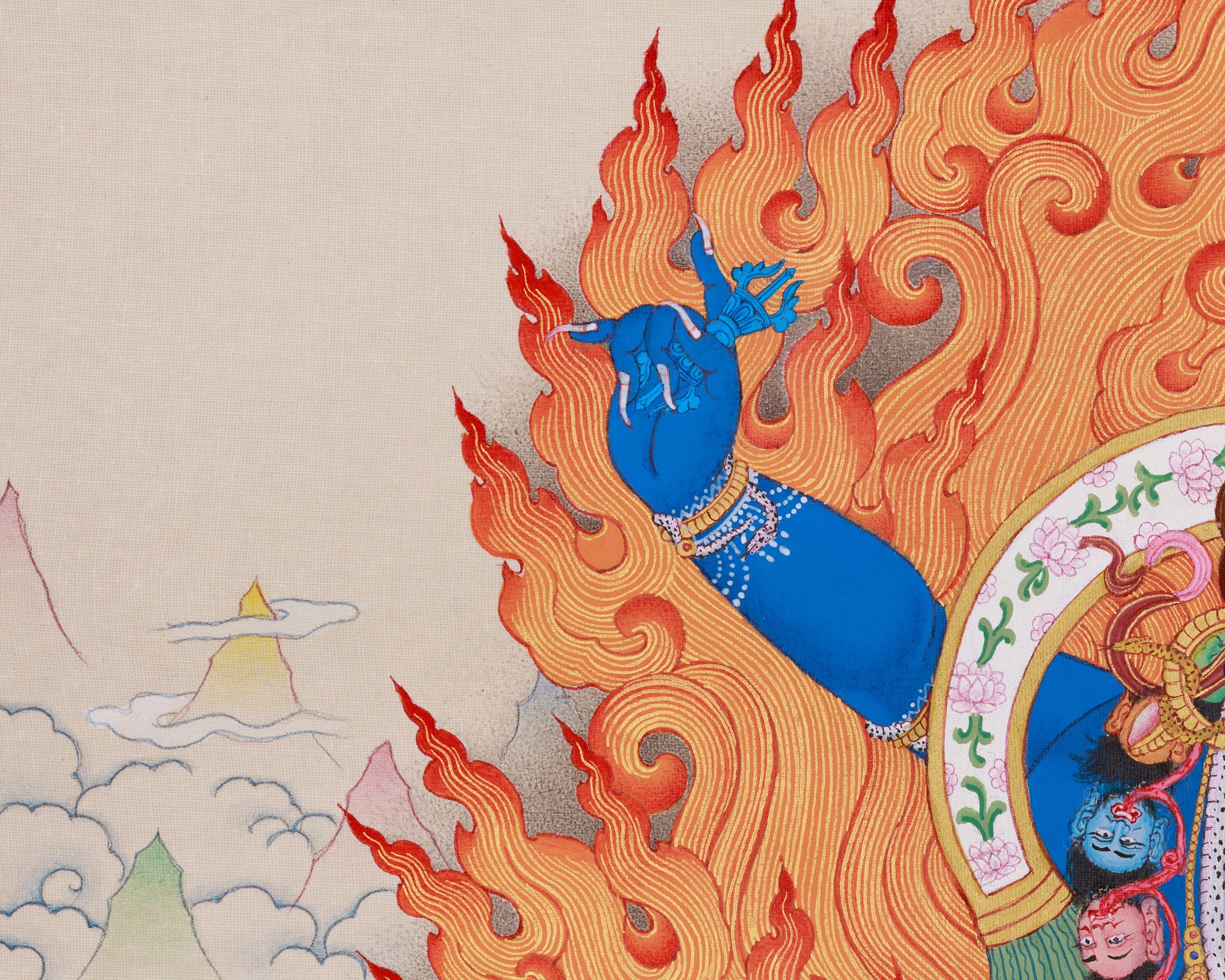 Exquisite Butadamara Buddhist Guardian Thangka | Destroyer of Ignorance | Featuring Mitrupa