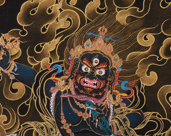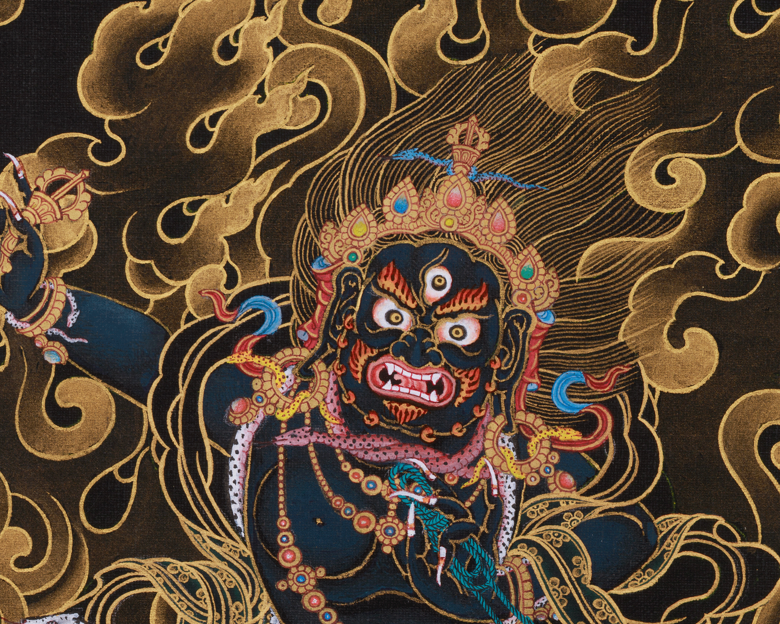 Gold on Black Thangka of Vajrapani | Protector of the Dharma