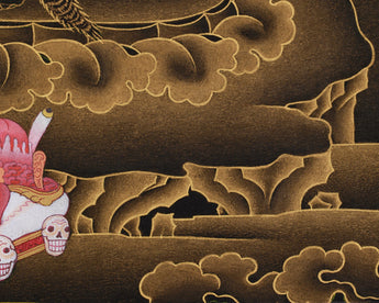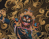 Immerse yourself in the divine strength of the Thangka of Vajrapani, hand-painted with vibrant acrylic colors and enhanced with genuine 24K gold in the Nakthang (Gold on Black) style. The gold detailing intricately emphasizes Vajrapani’s form, highlighting his fierce energy and divine protection. Painted on cotton canvas, this artwork is meticulously created, capturing Vajrapani’s powerful presence. His form, complete with dynamic force and intensity, symbolizes his role as a protector and guide in Tibetan Buddhism.
