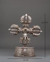 The Buddhist Traditional Vishwo Vajra is a powerful sacred symbol used in Tibetan Buddhist rituals to represent universal balance, spiritual authority, and indestructible wisdom. Crafted from a solid iron body, this impressive ritual object stands at 35.5cm in height and weighs 3.91kg, giving it a commanding and grounding presence. Known as the Double Vajra or Vishvavajra, this sacred emblem is traditionally placed on altars, in temples, or meditation spaces to stabilize energy and invoke protection from all directions.
