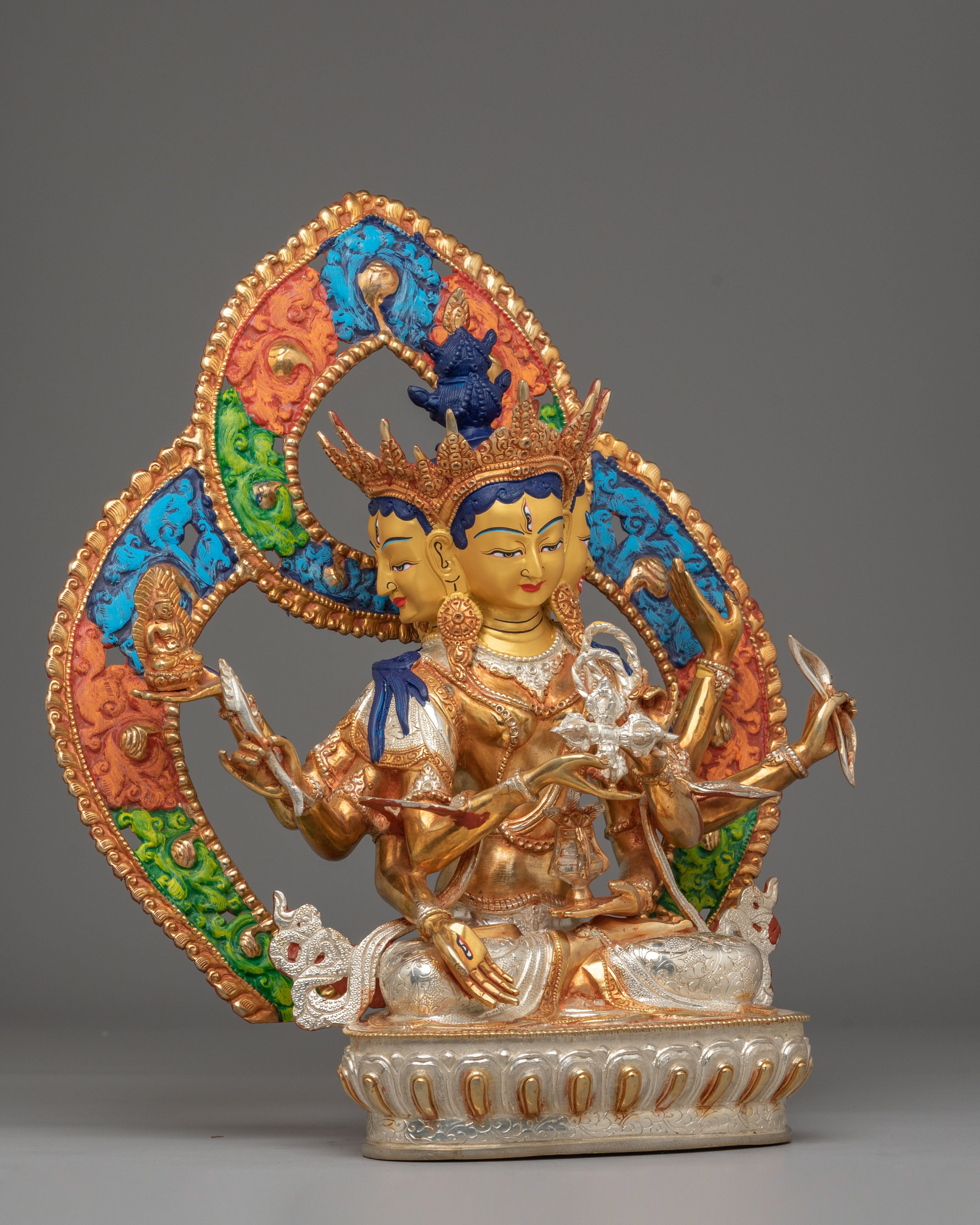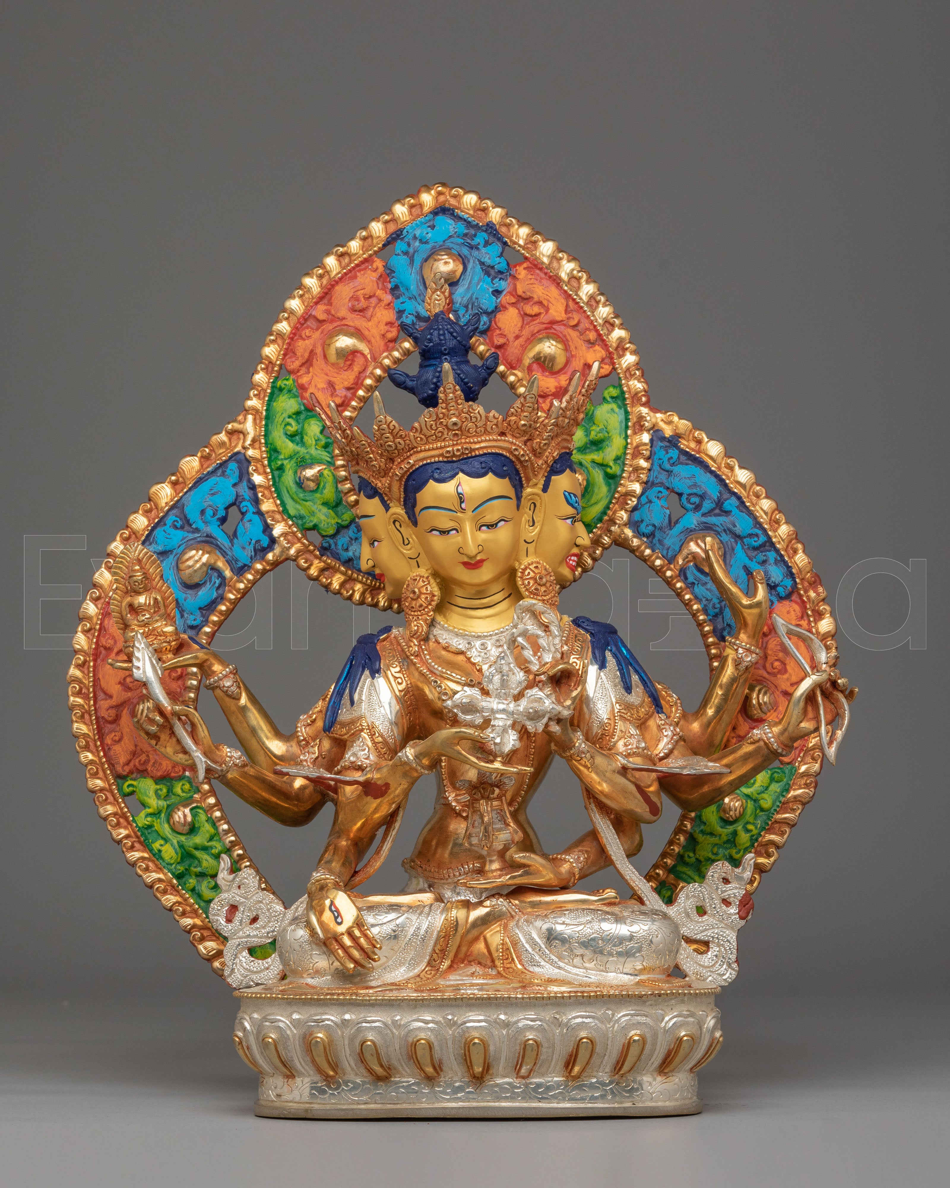 Namgyalma, a revered figure in Tibetan Buddhism, symbolizes the purification of negative karma and the attainment of eternal life. This statue’s design incorporates her signature iconography, with Namgyalma depicted in a compassionate, graceful posture, radiating peace and wisdom. The acrylic colors bring vibrancy and life to her form, while the electro gold and silver plating adds a layer of spiritual brilliance and sophistication. This Handcrafted Namgyalma Buddhist Statue is not only a beautiful piece of art but also a powerful symbol of longevity and purification, making it the perfect addition to any meditation room, altar, or spiritual collection.