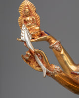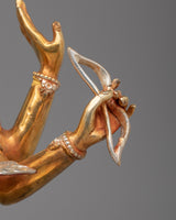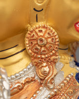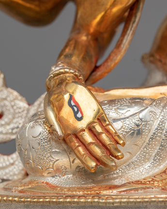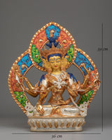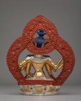 This magnificent Handcrafted Namgyalma Buddhist Statue is a remarkable work of spiritual art, standing at 39cm (Height) and 36cm (Width), with a weight of 5.48 kg. Created with a combination of acrylic color, copper body, and electro gold and silver plating, this statue is designed to capture the essence of Namgyalma, the deity of longevity and purification. Her serene expression and majestic form reflect her role in guiding practitioners toward spiritual liberation and longevity. The intricate details of this statue, including the radiant electro gold and silver plating, highlight her divine presence and elevate the aesthetic and spiritual energy of any sacred space.