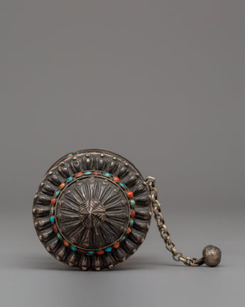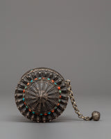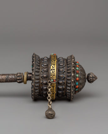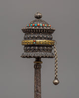 Handcrafted Traditional Prayer Wheel | Copper with Silver, Turquoise & Coral