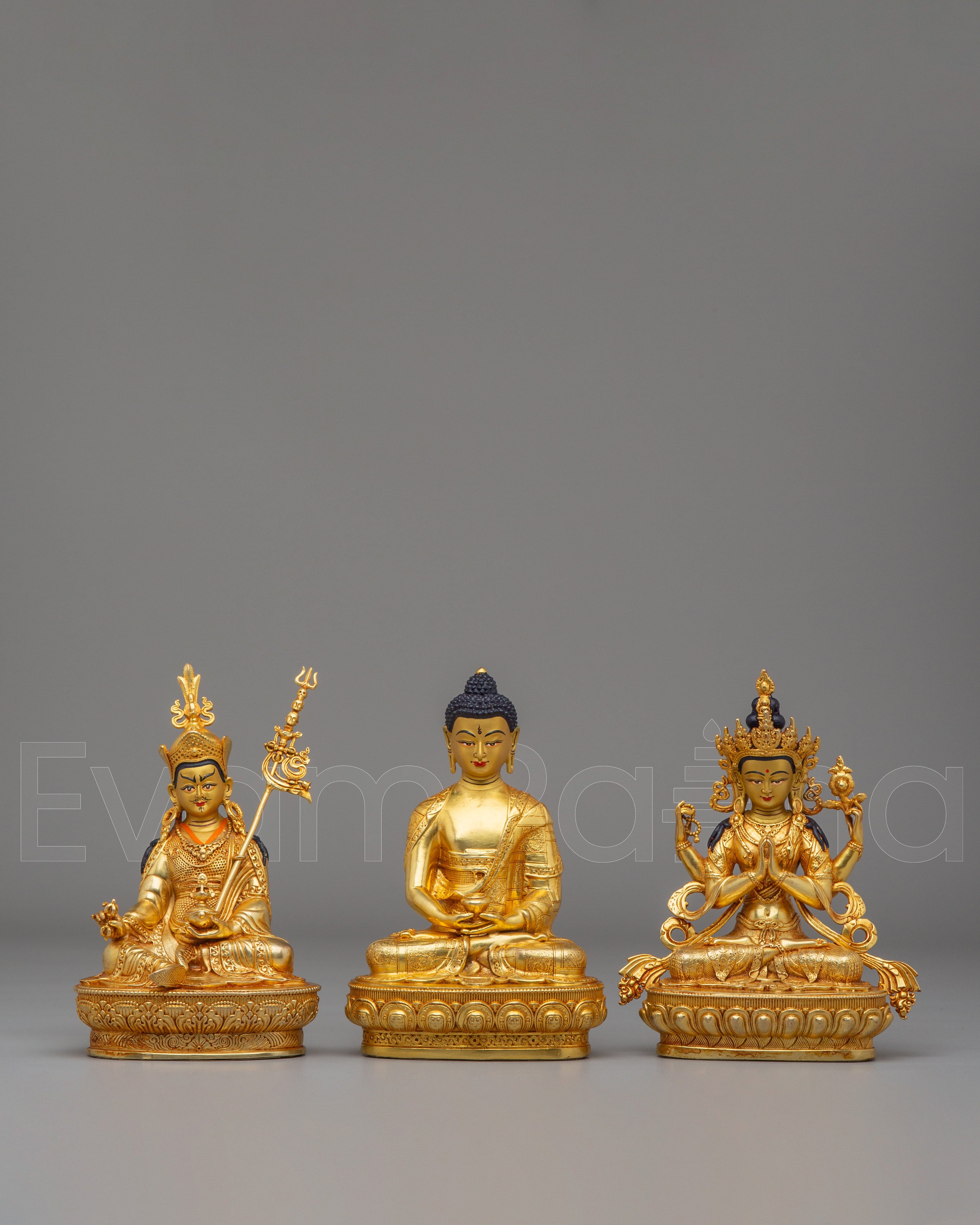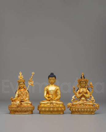 Handmade Buddha Dharma Sangha Statue Set | Guru Rinpoche Chenrezig Amitabha Buddha