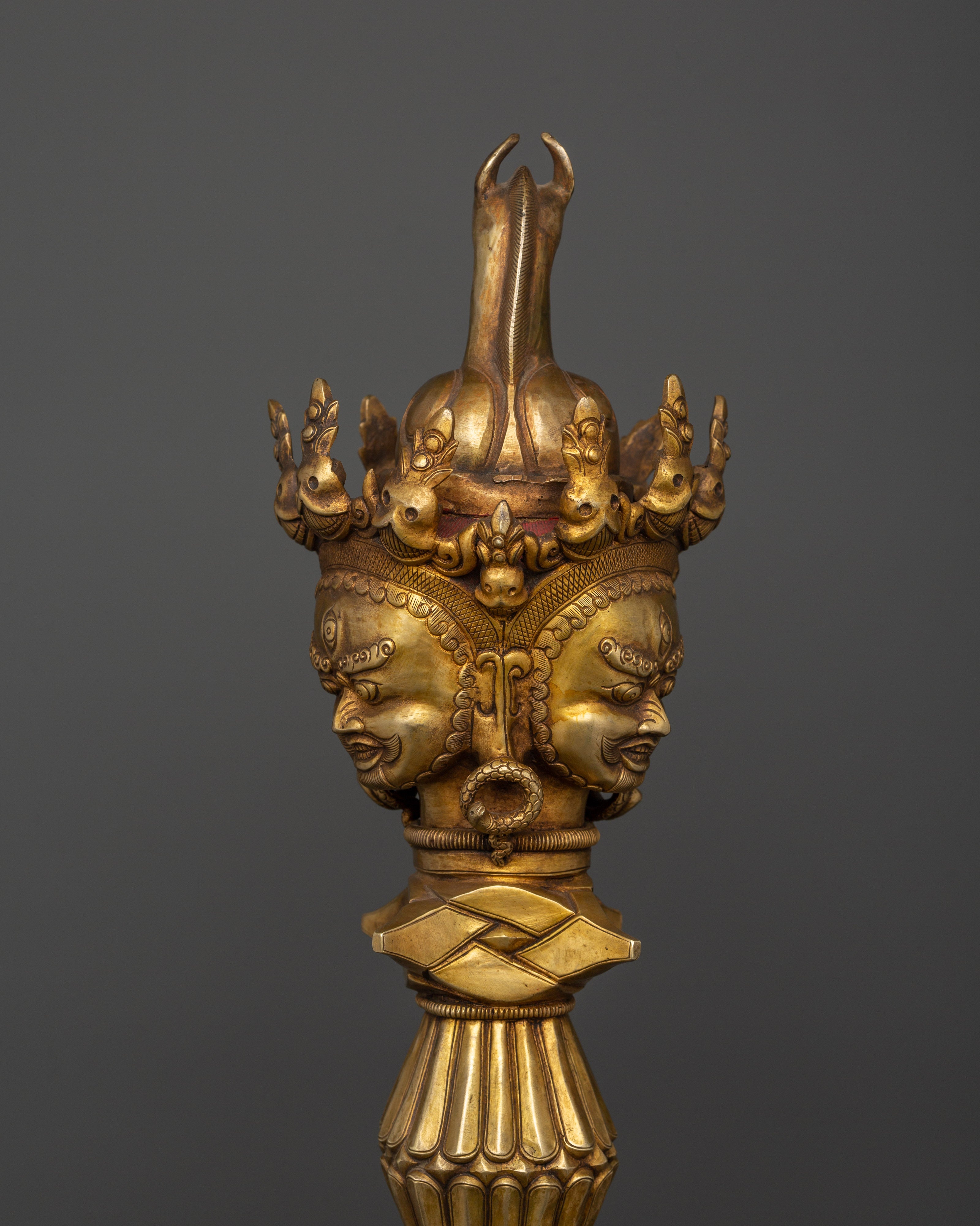 Three-Faced Phurba Dagger | Tibetan Gold Plated Phurba for Rituals