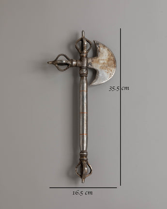 Perfect for collectors of Tibetan ritual objects, practitioners of Vajrayana Buddhism, and admirers of Himalayan sacred art, this Kartika Knife Axe brings symbolic meaning and spiritual depth to any environment. Its form reflects centuries of tradition, making it an inspiring addition to altars, dharma displays, and curated ritual collections.