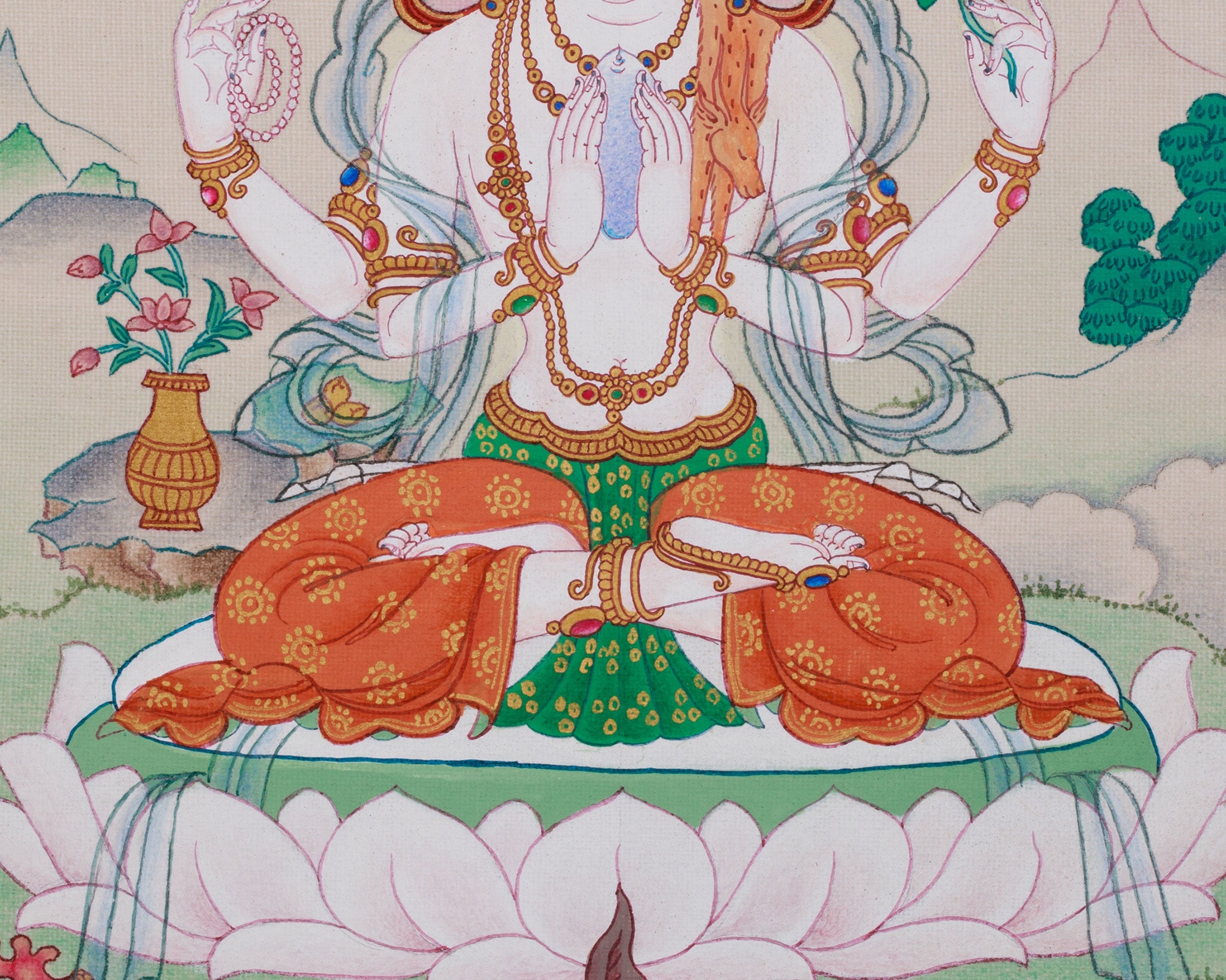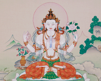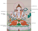 Bodhisattva Chenrezig, The God of Universal Compassion | Four-Armed Avalokiteshvara Thangka