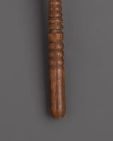 The wheel showcases detailed Tibetan motifs and intricate carvings that reflect deep spiritual symbolism and artisanal mastery. The copper body emits a radiant warmth, complemented by brass embellishments and white metal patterns that accentuate its sacred charm. A touch of artificial coral stone adds a vibrant, traditional aesthetic. The finely turned wooden handle ensures comfort and balance, making it ideal for meditation sessions, daily rituals, or as a statement piece in your home shrine or altar.
