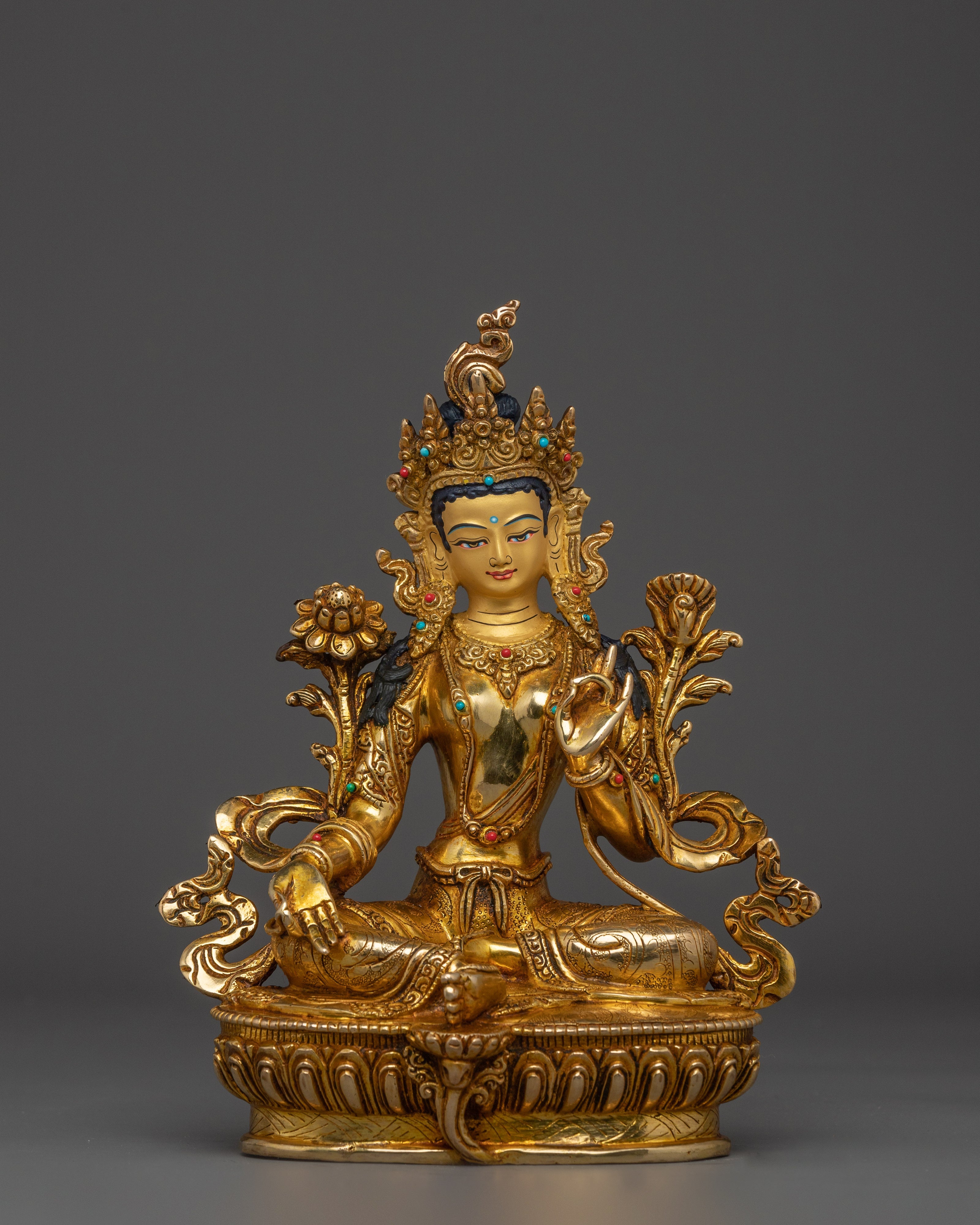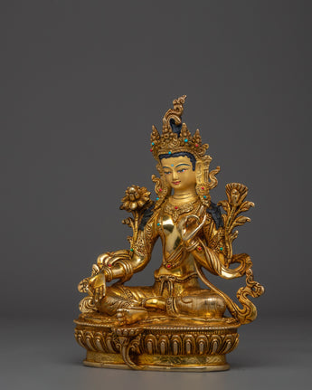 Handmade Lotus of Enlightenment Green Tara Statue | Mother of Liberation