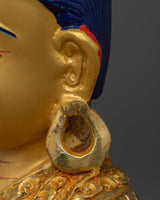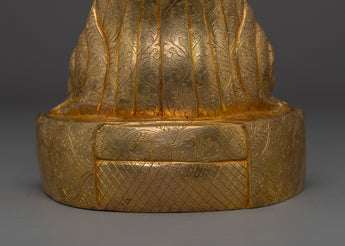 This handcrafted Marpa statue, measuring 8.3”/21cm in height and 6.9”/17.5cm at the base, weighs 1.81 kg. Made from 24K Gold-Gilded, Gold, and Acrylic Paintings on a Copper Body, it honors Marpa, a renowned master and teacher of Milarepa. A meaningful addition to any altar or meditation space, this statue embodies the profound spiritual heritage of Tibetan Buddhism.