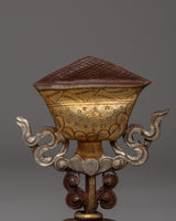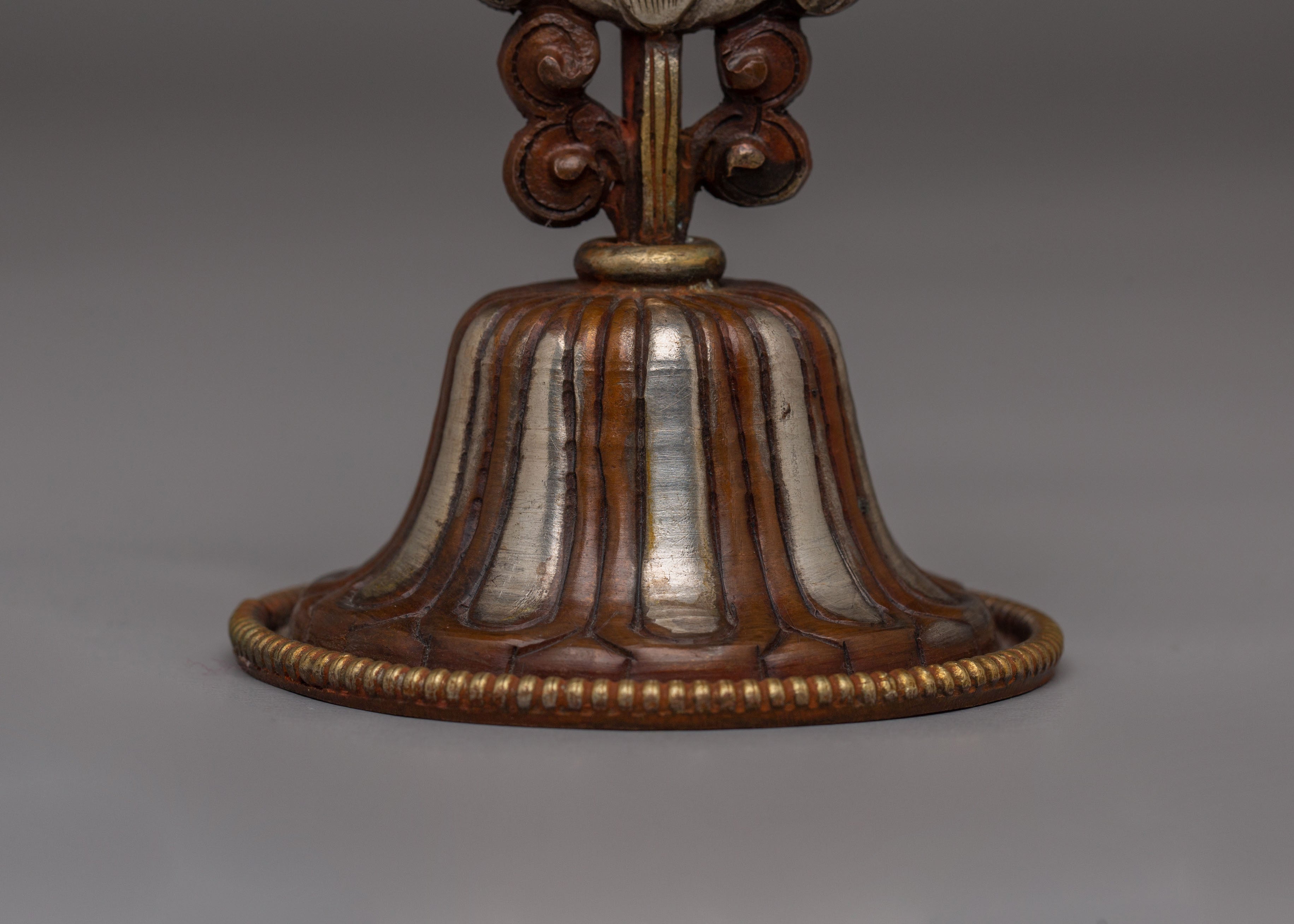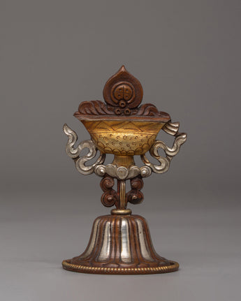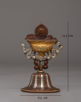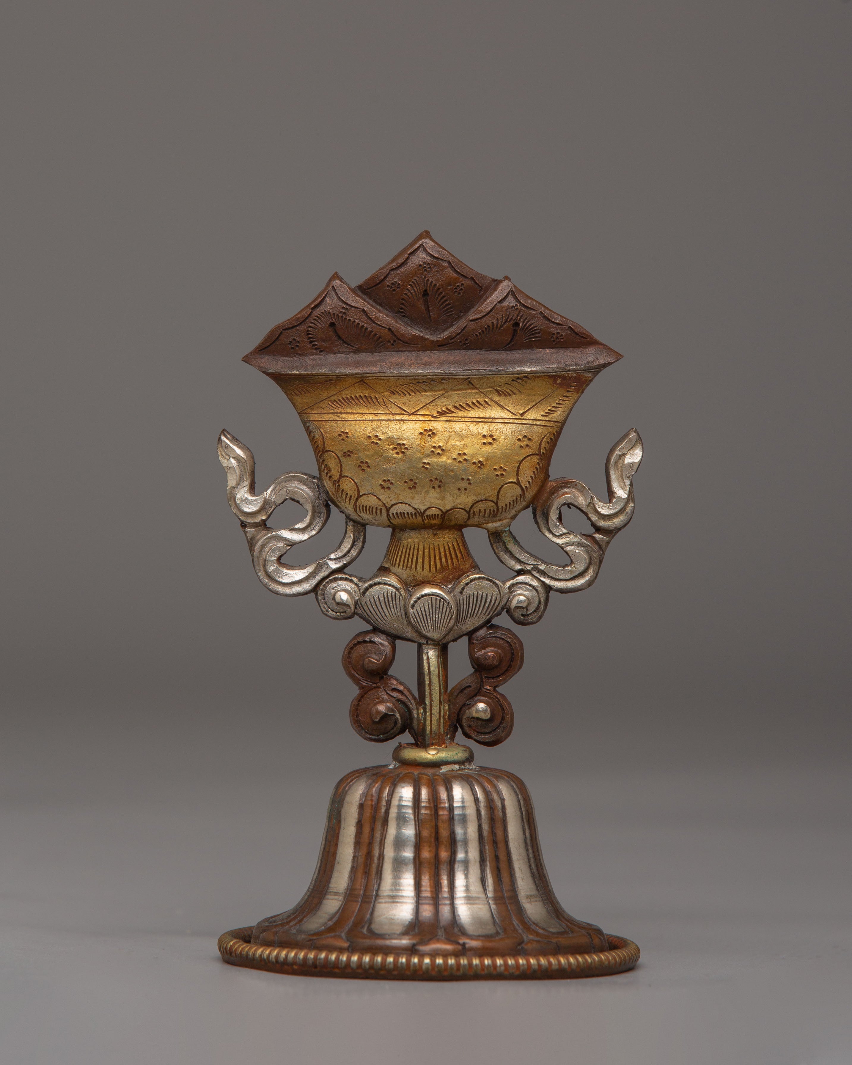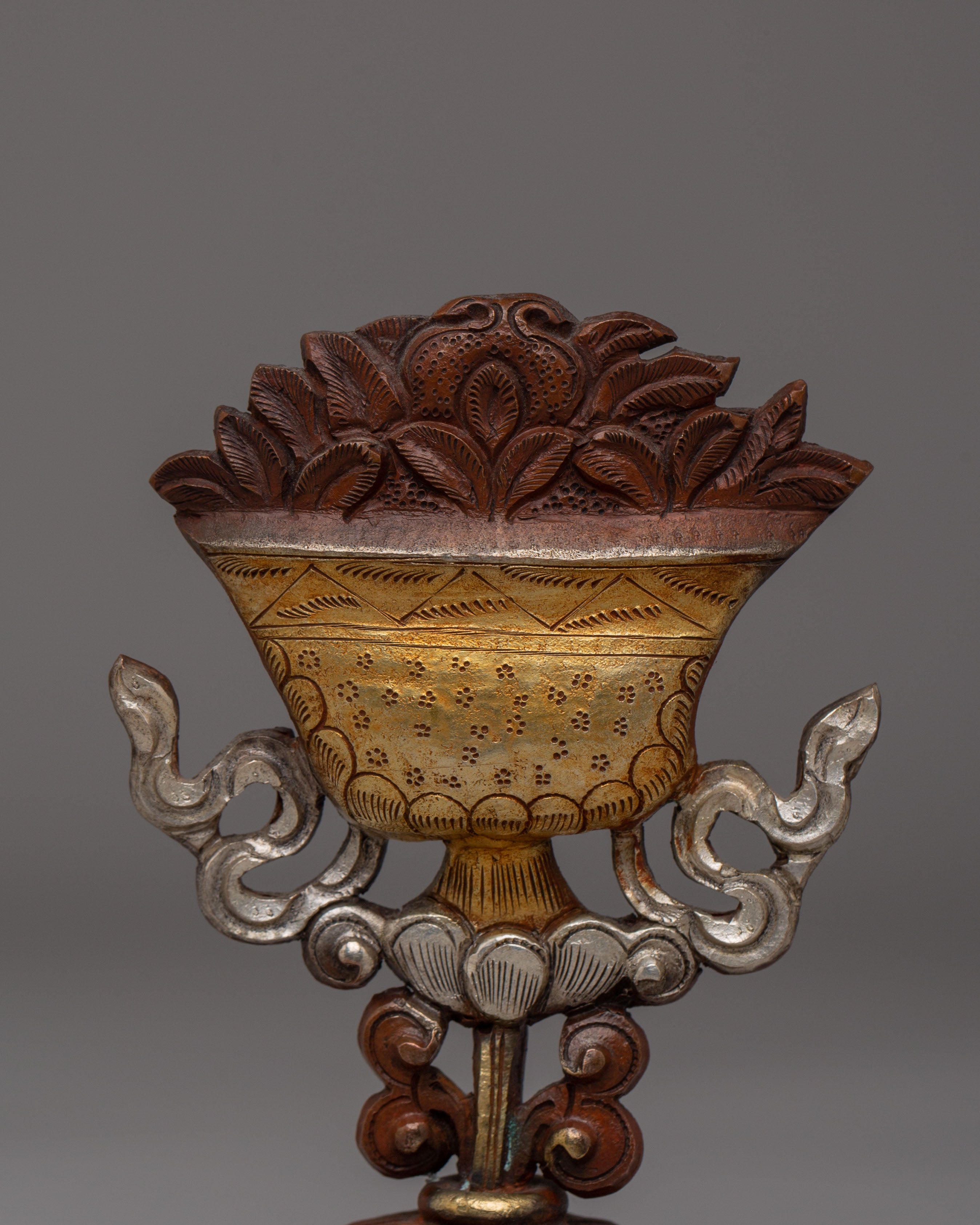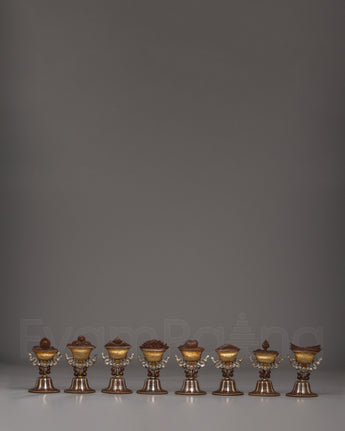 Each figurine in the set is meticulously crafted from oxidized copper and finished with a striking combination of gold and silver plating, offering an elegant, antique look. The detailed design features beautiful floral motifs and intricate detailing on the royal attire, capturing the essence of regal sophistication. The plating enhances the rich appearance of the set, making it a perfect decorative piece for enhancing any living space or altar.