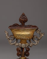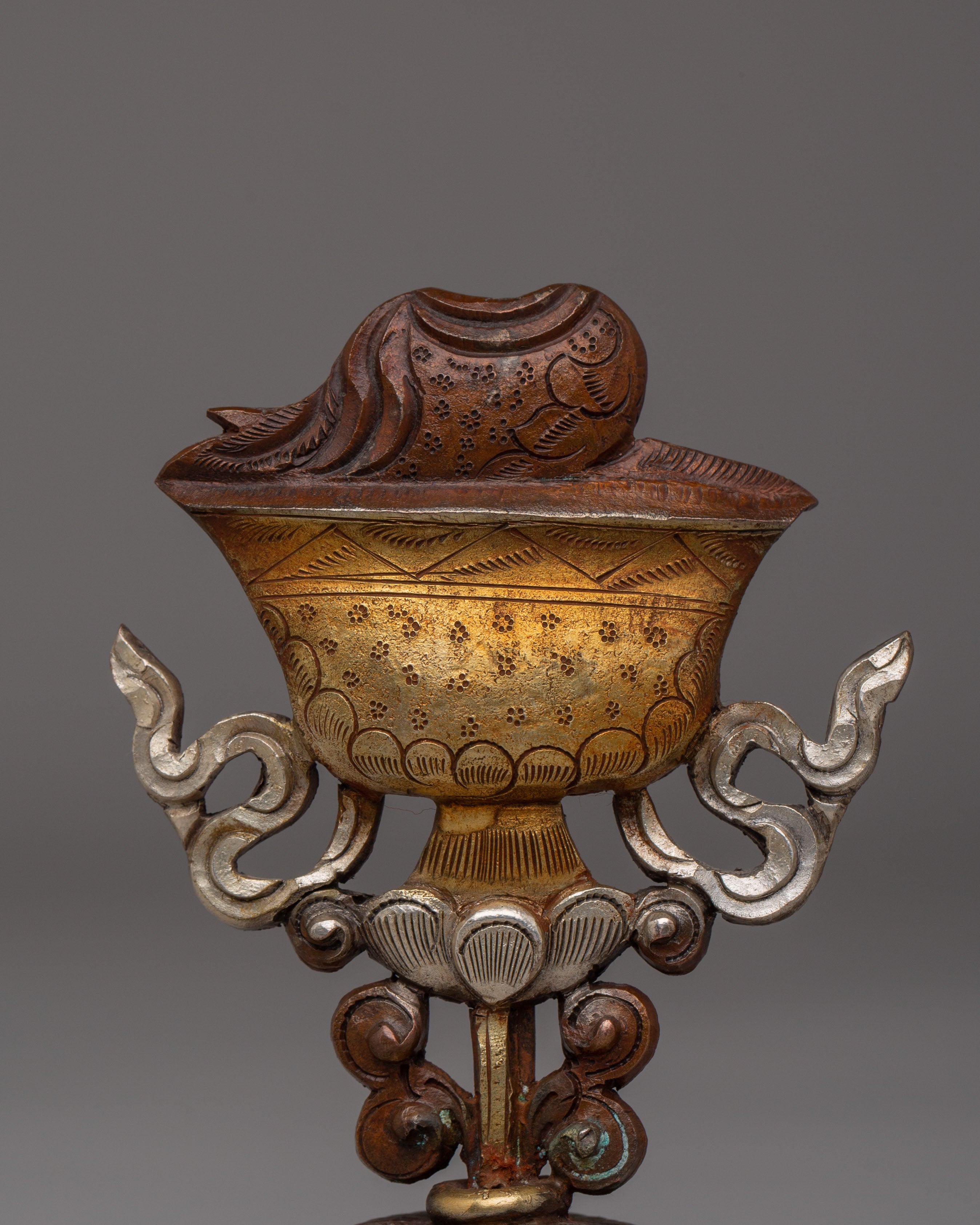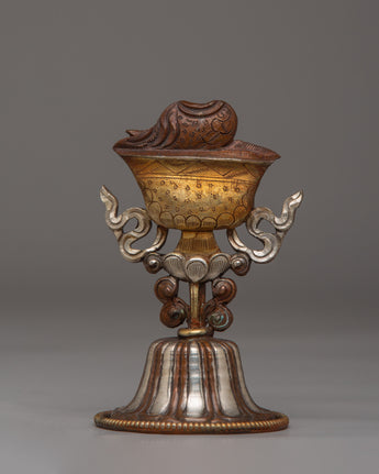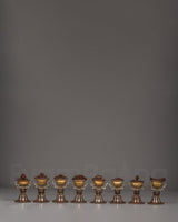 The Oxidized Copper Raja Rani Set is a stunning collection of handcrafted figurines made from premium copper, beautifully adorned with gold and silver plating. Each piece in the set stands 11.5 cm high and 6.5 cm wide, weighing 0.062 kg per figurine and totaling 0.48 kg. These intricate figurines are designed to symbolize the royal presence of the king (Raja) and queen (Rani) in traditional Indian culture, making them a perfect addition to any spiritual or decorative space.
