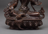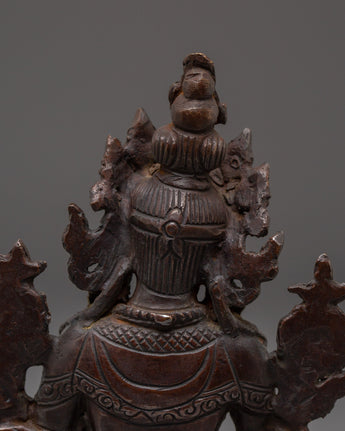 This Shyama Tara peaceful decor statue stands at 5.7”/14.5cm in height and 4.3”/11cm at the base, weighing 0.53 kg. Crafted from oxidized copper by skilled Nepalese artisans, this statue represents Green Tara, the compassionate protector who swiftly responds to the suffering of sentient beings. Ideal for meditation spaces, personal altars, or spiritual decor, it embodies serenity, protection, and the loving presence of the Divine Feminine.