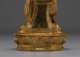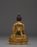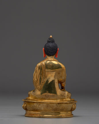 This Handcrafted Shakyamuni Buddha Statue stands 5.7” (14.5cm) in height and 4.1” (10.5cm) at the base, weighing 0.55 kg. Expertly crafted from a copper body and adorned with 24K gold gilding, along with gold and acrylic paintings, this piece reflects the refined work of skilled Nepali artisans. Its compact size and elegant finish make it ideal for altars, meditation spaces, or as a meaningful spiritual decor item.