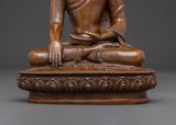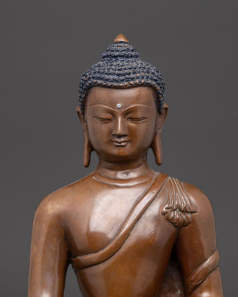 The Statue of Buddha Shakyamuni stands at 9.8” (25 cm) tall with a 7.3” (18.5 cm) base and weighs 2.32 kg. Expertly crafted from an oxidized copper body and enhanced with acrylic paintings, it offers a rich, antique appearance that honors traditional Himalayan craftsmanship. Its balanced size makes it ideal for personal altars, meditation spaces, or as a meaningful spiritual gift that reflects timeless devotion and artistry.