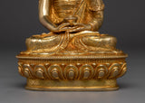This Sukhavati Ruler Amitabha Buddha Artwork stands at 8.1” (20.5cm) in height with a base width of 5.3” (13.5cm). Crafted from a copper body, the statue is enhanced with 24K gold gilding, giving it a radiant finish. Intricate gold and acrylic paintings bring the statue's features to life, adding color and detail to the serene depiction of Amitabha Buddha. Crafted by expert artisans, this item symbolizes the rich traditions of Himalayan Buddhism, making it an important addition to altars, meditation places, or holy collections.
