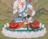 This exquisite hand-painted Buddha of Purification Vajrasattva art piece is made with the finest materials, including cotton canvas, shimmering 24K gold, and natural stone colors. These carefully chosen materials add deep spiritual meaning and a radiant beauty that truly captivates. Created in the traditional Karma Gadri style, this thangka showcases exquisite craftsmanship that embodies spiritual growth and purification, making it a truly special and meaningful work of art.