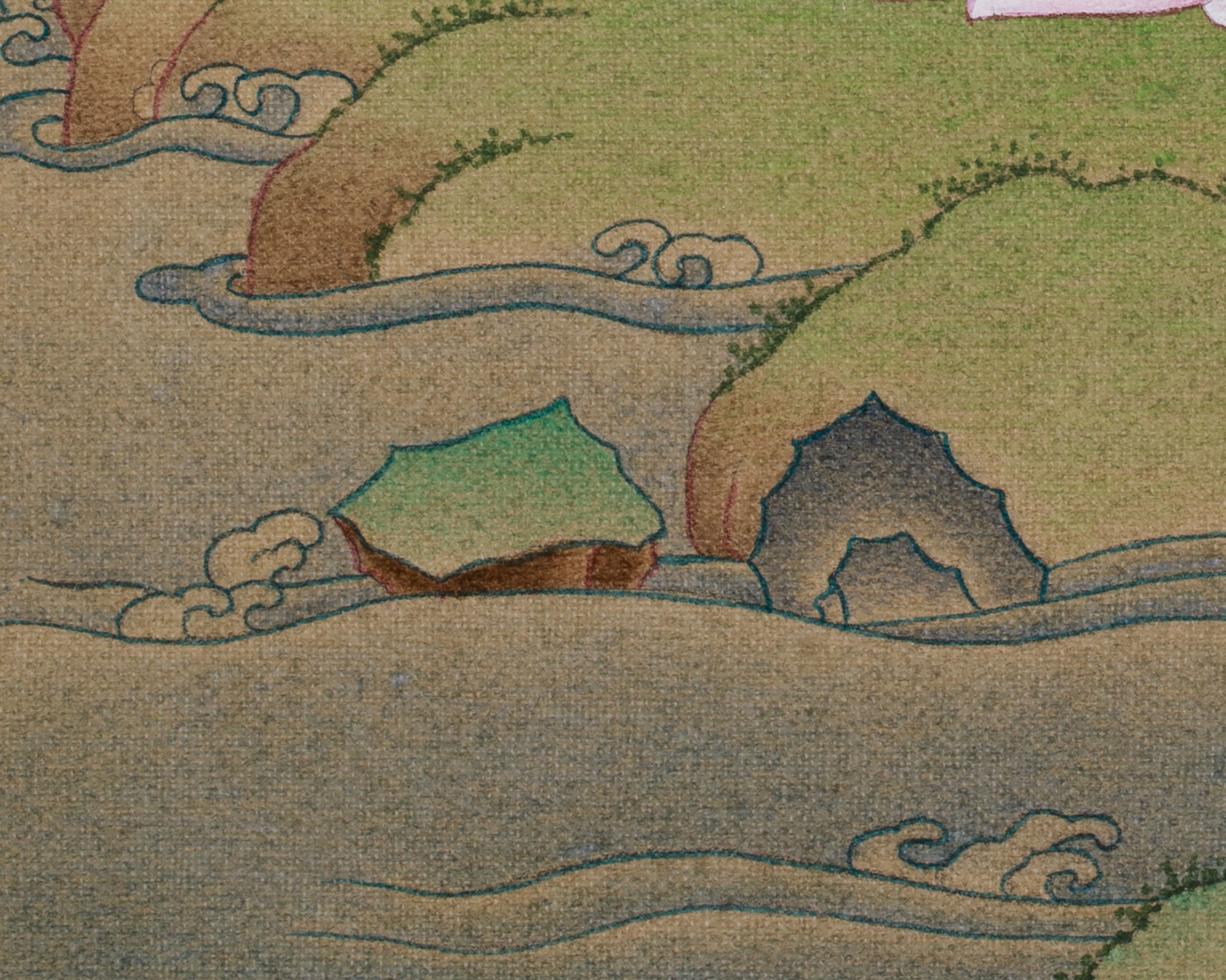- Regularly inspect your thangka; examine the borders and all attachments.
