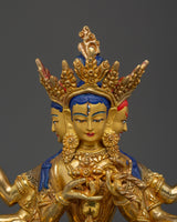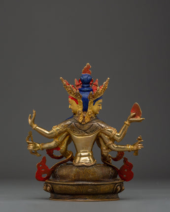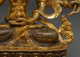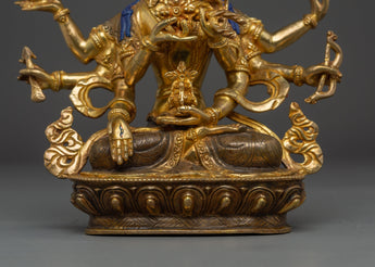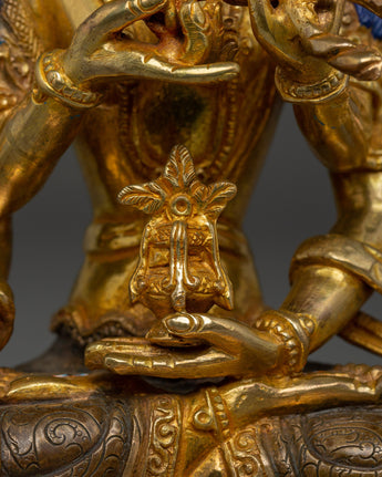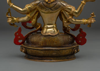 Explore the majestic elegance of the Buddhist Deity Namgyalma Copper Statue with this carefully made copper statue that is embellished with intricate acrylic painting and 24K gold plating. This statue, which is 9.6 inches tall, is a potent spiritual emblem for your altar or meditation area that invites change, compassion, and protection into your practice.