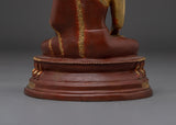 The Tranquil Gautama Buddha Art symbolizes the Buddha's profound teachings and the path to spiritual awakening. This handcrafted statue is 8.9" (Height) x 6.9" (Base) and weighs 1.72 kg. It is made of copper, decorated with 24K gold gilding, and enhanced with gold and acrylic paints. This sacred statue, crafted by expert Nepalese artisans, embodies the craftsmanship of Himalayan Buddhism, making it an inspirational addition to altars, meditation spaces, or holy collections.