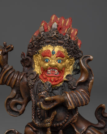 Handmade Wrathful Deity Mahakala Bernagchen | Oxidized Copper Statue