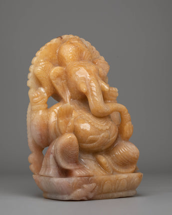 This Aventurine Crystal Ganesh Statue represents the sacred form of Lord Ganesha, one of the most revered deities in Hindu tradition. Known as the remover of obstacles and the lord of beginnings, Ganesha is honored before prayers, and new journey. Carved from natural aventurine crystal, the statue reflects devotional art inspired by temple worship and ancient spiritual customs.