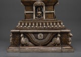 This Large Oxidized Copper Stupa is a majestic and spiritually significant object that was meticulously constructed. This stupa, which stands 70 cm tall and 39 cm wide, weighs an impressive 27.98 kg and is crafted from oxidized copper with silver plating, adding to its spiritual beauty and eternal appeal. This stupa is an excellent addition to any Buddhist altar, spiritual area, or home decor, providing both aesthetic value and profound symbolism.