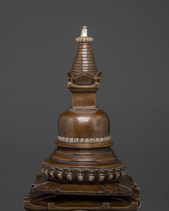 Large Oxidized Copper Stupa | Buddha Statue for Altar