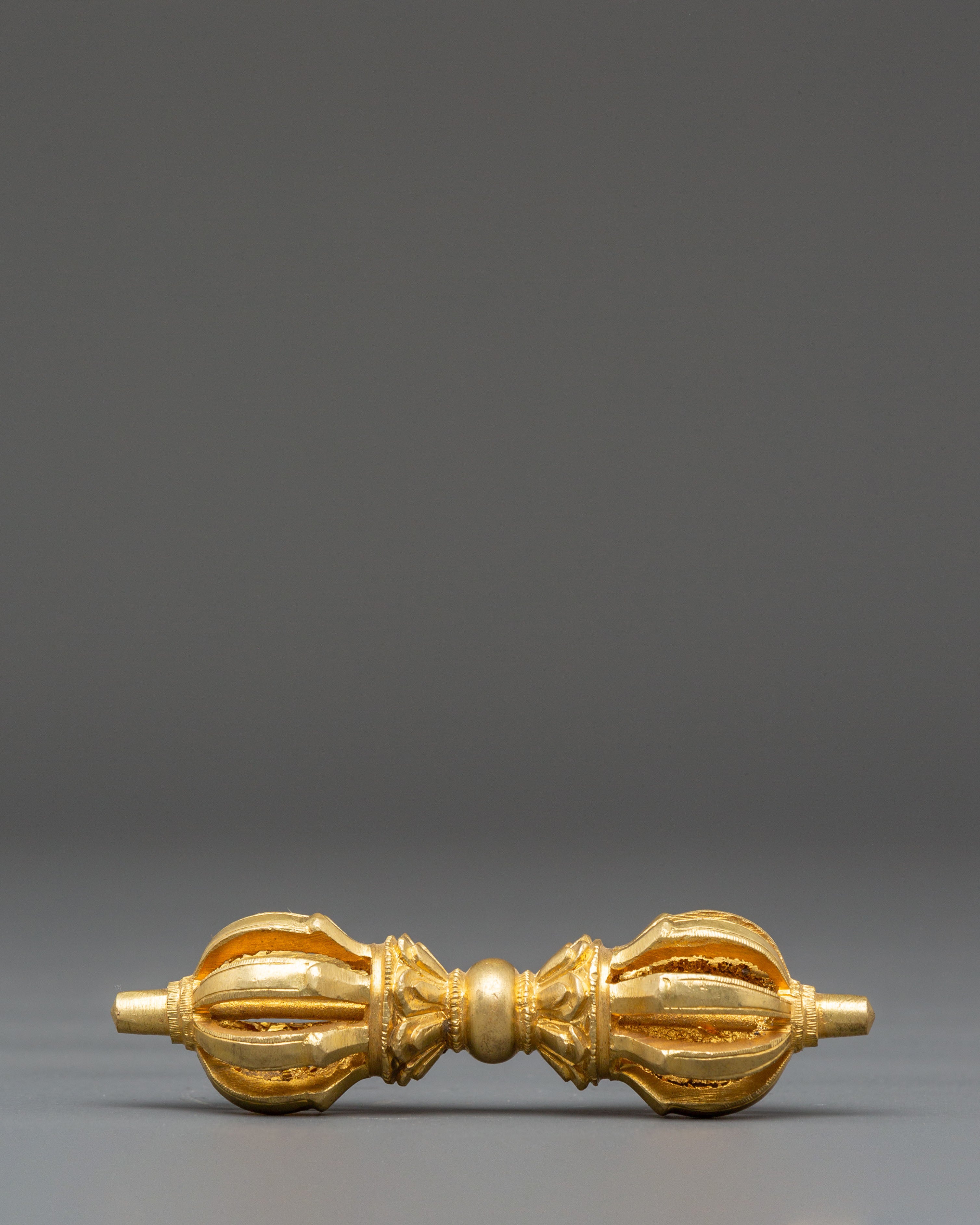 The Tibetan Dorje represents the indestructibility and efficiency that overcome all obstacles. Symbolically, Dorje Vajra destroys ignorance. In Tibetan Buddhist rituals, the vajra is often paired with the bell, representing the masculine and feminine, the yin and yang, as well as the balance between practical action and compassion. The shape of the Tibetan Dorje is symmetrical, the two pyramidal heads representing samsara and Nirvana, which cancel each other out in its center, thanks to the ring of Emptiness. Placing a Dorje at home would have positive virtues against the various attacks we suffer.