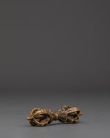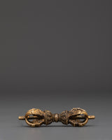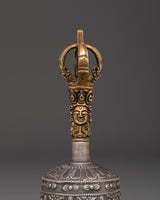 The Tibetan Bell represents enlightenment, wisdom, and compassion in Buddhist rituals. Its clean, resonant tone serves as a reminder of the clarity and focus required to follow one's spiritual path. The Vajra, measuring 2.3 cm in height and 10 cm in width, complements the bell well. The Vajra, a symbol of indestructibility and spiritual power, energizes your practice and meditation. The highly detailed craftsmanship on both the bell and the vajra demon showcases the skill and attention required in their fabrication.