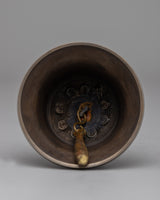 This Bronze Vajra and Bell for Buddhist Practice features a wonderfully carved vajra (12 cm wide, 3 cm high, 0.18 kg) and a ghanta bell (8.5 cm broad, 16 cm tall, 0.36 kg) made of bronze. The vajra, with its symmetrical prongs and central sphere, represents compassion and skillful means, whereas the ghanta represents wisdom. Together, they represent the necessary balance for enlightenment in Vajrayana Buddhism. The beautiful engravings and celestial motifs elevate the solemnity of these ritual implements.