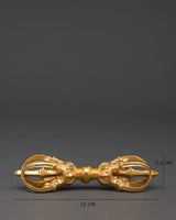 This magnificent copper and gold-plated Vajra is more than a decorative piece; it is a tool for improving your practice and cultivating spiritual well-being. This Tibetan ceremonial instrument, whether used for energy cleaning, protection, or as an artistic addition to your spiritual decor, draws sacred energy into your area. It is ideal for meditation practitioners, energy healers, and those seeking to enhance their spiritual practices, as it serves as a powerful reminder of the path to enlightenment and harmony.