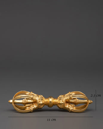 The Copper Ritual Vajra Dorje is a powerful Tibetan spiritual tool that helps to channel energy and establish spiritual harmony. This power sign, crafted with a gold-plated finish on a copper body, is a sacred object for energy cleaning, protection, and healing. Its dimensions are 2.3 cm in height and 11 cm in breadth, making it ideal for ritual practices, meditation, or as a spiritual accent in your home or altar. The Vajra Dorje represents the indestructible essence of enlightenment, making it a must-have for individuals seeking spiritual strength and inner harmony.