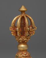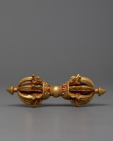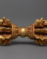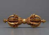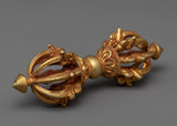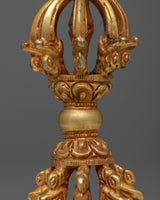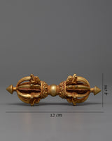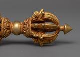 A laboriously constructed spiritual object of great significance in Tibetan Buddhism is the Copper Tibetan Dorje Vajra. This Vajra is made up of a copper body and an exquisite electrogold plating finish that adds durability and sophistication. Often referred to as the "thunderbolt" or "diamond," the Vajra represents the unbreakable and unconquerable quality of spiritual truth. It is an essential symbol in Tibetan ceremonies, signifying the mighty power of enlightenment.