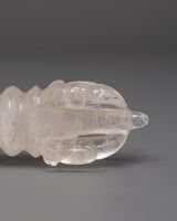 In Buddhist tradition, the vajra (dorje) symbolizes the thunderbolt of enlightenment, unbreakable, luminous, and transformative. Crafted from crystal, it enhances the energy of clarity, healing, and balance, helping practitioners remove obstacles from the spiritual path. This sacred artifact embodies the union of wisdom and compassion, serving as both a symbolic and functional ritual tool for ceremonies, meditation, and spiritual offerings. A meaningful centerpiece for your shrine, it radiates serenity and sacred power.