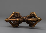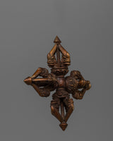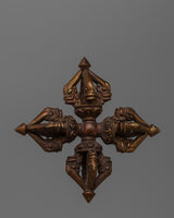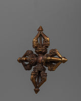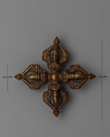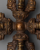 The elaborate design of this decorative piece emphasizes its cultural and spiritual significance, acting as both a powerful symbol and a beautiful relic. Its antique finish imparts a timeless aspect, making it an excellent addition to any altar, meditation place, or sacred object collection. In rituals and ceremonies, the Vishwa Vajra is employed as a powerful tool for meditation and spiritual development. It serves as a reminder of the practitioner's potential to achieve enlightenment and navigate the challenges of existence with clarity and strength.