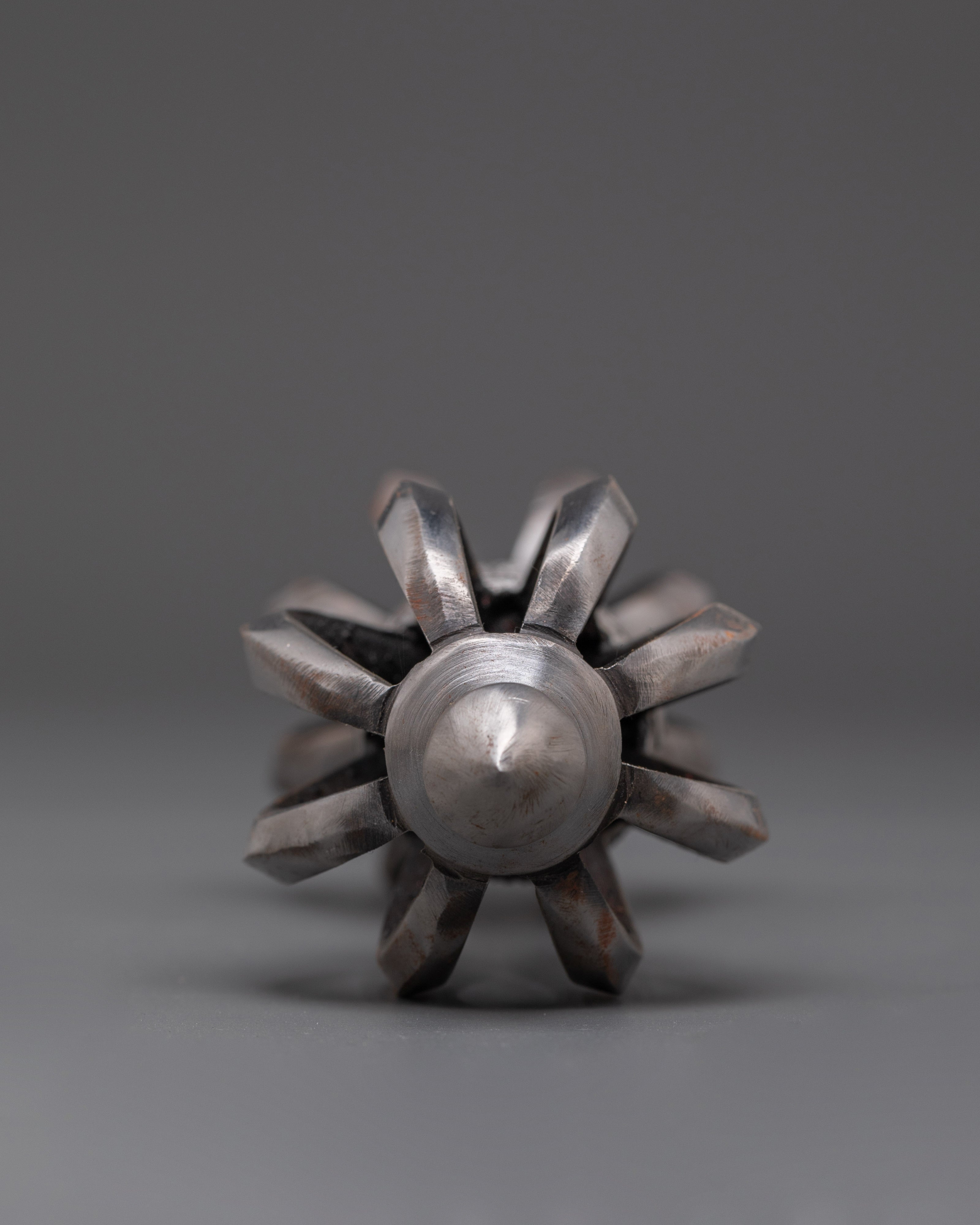 The design of this Dorje is meticulously crafted, featuring intricate carvings that embody the ancient symbols of wisdom and clarity. The sharp points at both ends of the Dorje represent the cutting of illusion and attachment, while the central piece embodies the unity of all things. This iron Dorje is a symbol of both strength and balance, making it an indispensable tool for anyone seeking to deepen their spiritual journey. Its bold, spiritual design reflects the strength needed to overcome life's challenges.