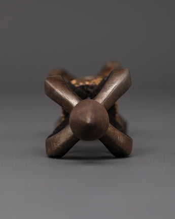 The strength of spiritual awakening is symbolized by the Thunder Vajra, which pierces ego and delusion like a thunderbolt. The intricate symmetry and accuracy of this handcrafted brass and iron vajra pay homage to centuries-old patterns and ceremonial use. It has profound symbolic meaning whether it is utilized in meditation, ceremonial practice, or on a Buddhist altar. It is perfect for both ritual performance and personal devotion because of its weight and well-balanced design. For practitioners of Tibetan Buddhism, Vajrayana traditions, and those seeking clarity and spiritual strength, this Enlightenment Thunder Vajra is indispensable. It exemplifies important concepts like compassion, enlightenment, and unbreakable truth.