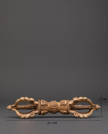 This meticulously crafted Ethically Sourced Yak Bone Vajra is a significant ritual object grounded in Tibetan Buddhist heritage. At 7 inches wide, it represents strength and spiritual resilience, making it perfect for tantric meditation. Known as the Vajra or Dorje, it symbolizes the steadfast path to enlightenment, helping practitioners overcome ignorance to achieve clarity, compassion, and transformative growth.