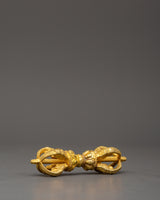 This Handcrafted Meditation Bell and Vajra Set is ideal for anyone wishing to improve their meditation or spiritual practices. The bell, made of brass and bronze, produces a clear and resonant tone that helps focus the mind during meditation sessions. This bell, which stands 17 cm tall and 9 cm wide, is both utilitarian and visually appealing. The vajra, which measures 3.5 cm in height and 12.5 cm in width, represents the unity of wisdom and compassion, making it an essential weapon in Tibetan ceremonies. Together, they weigh 0.610 kg, creating a peaceful and balanced presence in your spiritual environment.